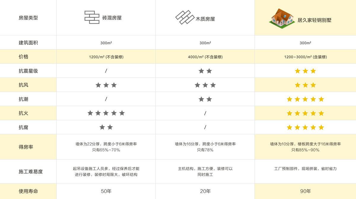 居久家房屋輕鋼房屋體系,抗震能力達9級,抗風(fēng)能力達13級。