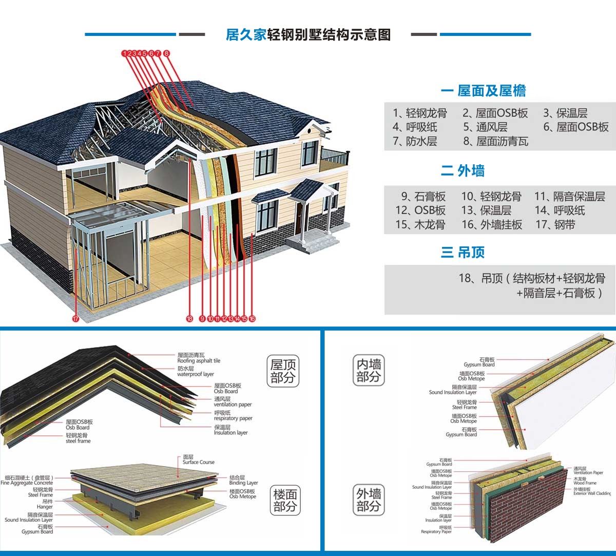 居久家輕鋼別墅隸屬于四川萬建城建筑工程有限公司,集科研、設(shè)計、咨詢、加工、生產(chǎn)安裝為一體。一直致力于新型輕鋼結(jié)構(gòu)房屋的研究、開發(fā)和應(yīng)用,倡導(dǎo)房屋建筑的設(shè)計和應(yīng)用在標(biāo)準(zhǔn)化、模塊化、通用化、規(guī)模化生產(chǎn)的同時,實現(xiàn)人居環(huán)境的個性化、人性化、以及健康和舒適。 公司目前引進具有國內(nèi)先進水平輕鋼結(jié)構(gòu)房屋建筑技術(shù)和生產(chǎn)線,標(biāo)準(zhǔn)化、精細化和定制化設(shè)計、制造、安裝輕鋼結(jié)構(gòu)房屋。不僅能夠提供風(fēng)格各異的別墅建筑,同樣能夠提供行業(yè)標(biāo)準(zhǔn)的輕鋼樓宇建筑及建筑群。居久家裝配式房屋技術(shù)體系是高效節(jié)能型綠色建筑體系,各項建筑物理性能卓越,處于業(yè)內(nèi)先進水平,能夠為客戶提供全程模塊化綠色建筑集成解決方案。